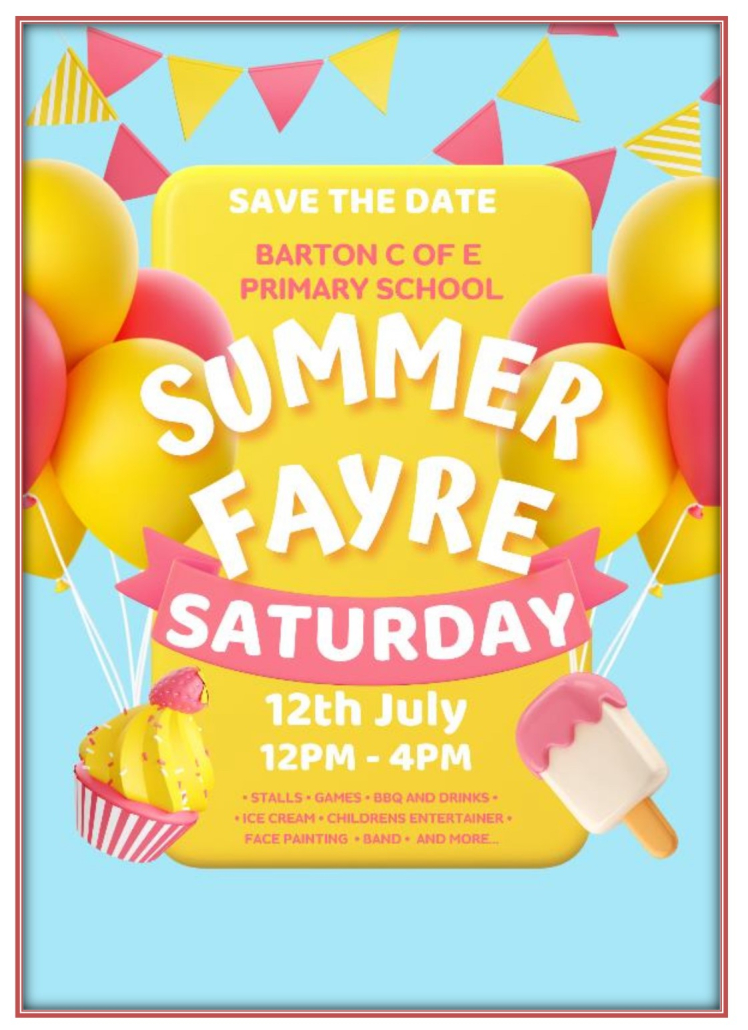 Friends of Barton School are hosting our Summer Fair on Saturday 12th July from 12-4pm.